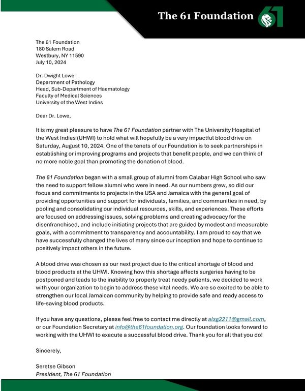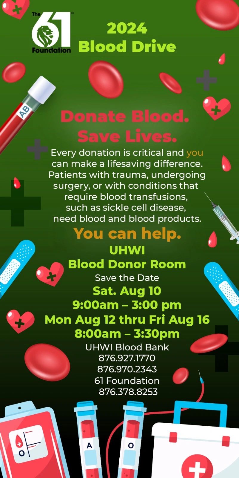 This is a 61 Foundation led blood drive, Too often members of our family are in need of blood and it is only then that the appeal goes out, the result is a little too late. Come out and support by donating, think of it as being proactive. Help save a life, it may be your own or that of a love one.